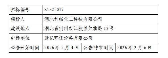關(guān)于湖北利拓化工科技有限公司1批鋼制非標(biāo)設(shè)備公開(kāi)招標(biāo)采購(gòu)結(jié)果公示: 招標(biāo)單位:利爾化學(xué)股份有限公司...